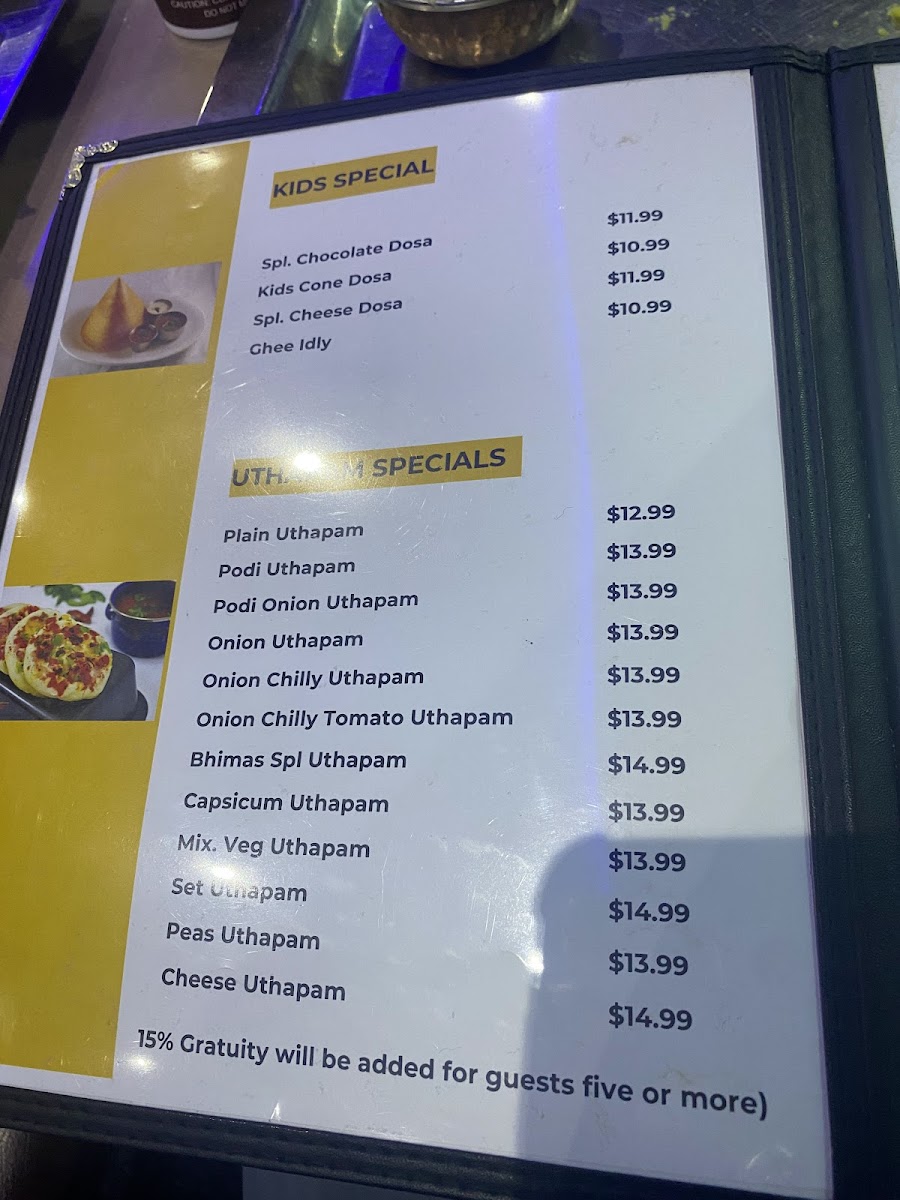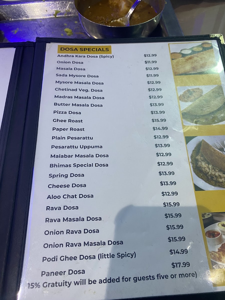 If you’re in the mood for some authentic South Indian flavors, the Tirupathi Bhimas Menu is a delight to explore. From the moment you glance at the variety, it’s clear that there’s something for everyone, whether you’re craving something light like crisp dosas or feeling indulgent with rich, flavorful curries. Each dish feels thoughtfully prepared, with the kind of spices that make your taste buds perk up without overwhelming them.