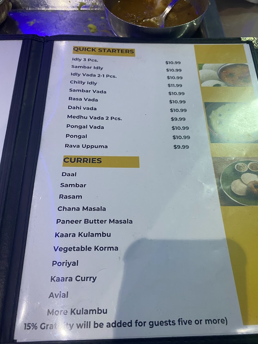 What’s fun is how the menu balances familiar favorites with a few surprises that keep you coming back. You can start with a steaming bowl of sambar or try their specialty chutneys alongside hot idlis, then move on to heartier plates like biryani or masala-packed snacks that are perfect for sharing. Drinks and desserts sneak in little moments of joy too, rounding out the experience naturally.
